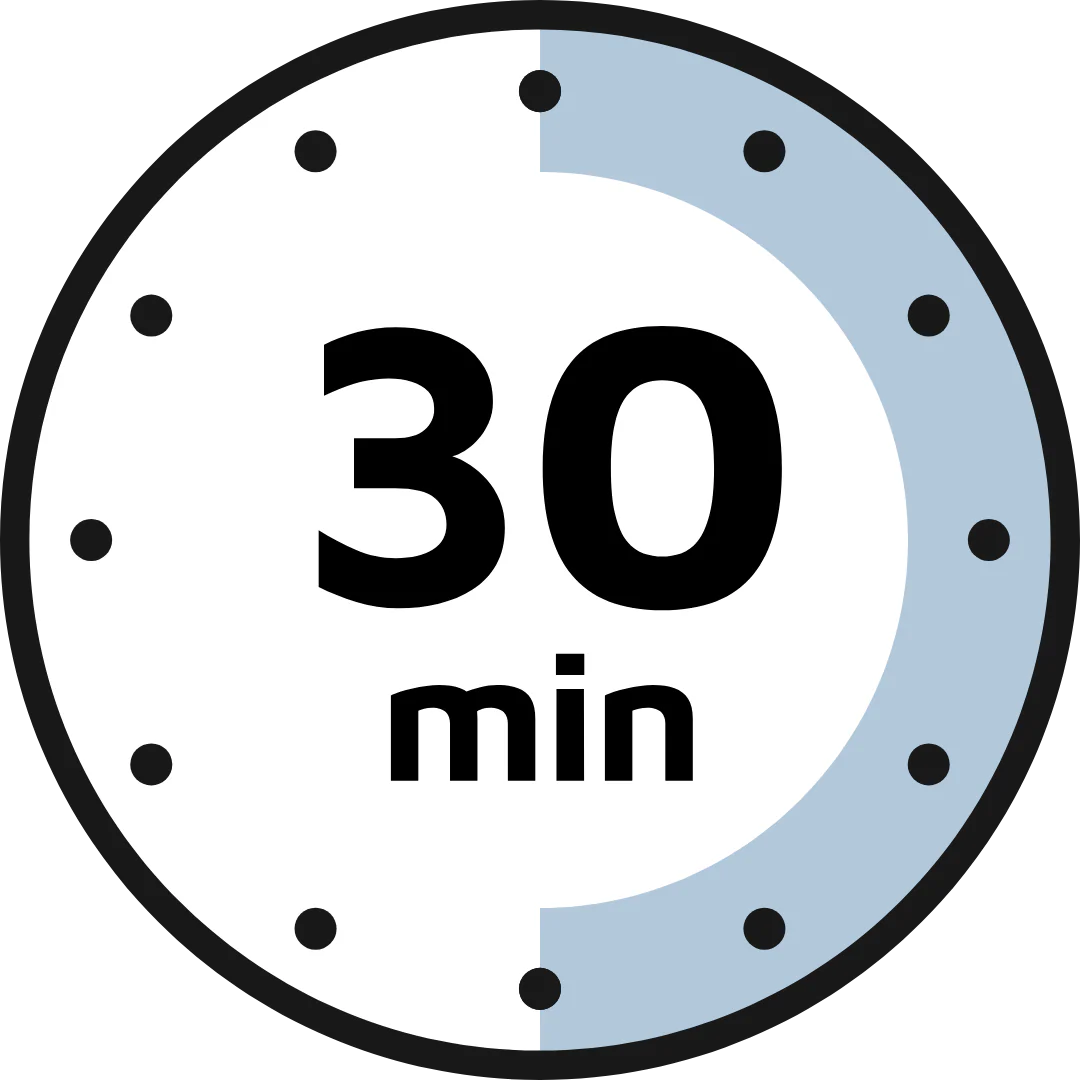 Four 30-min sessions on one charge, worry-free.